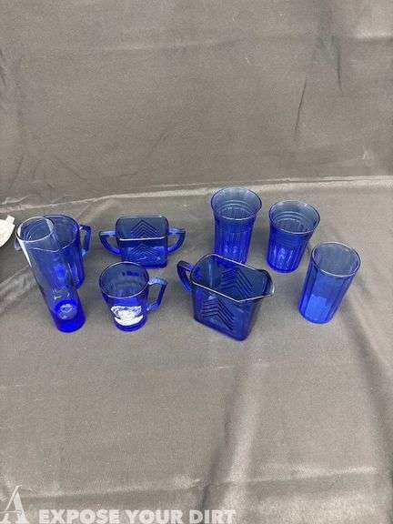 9- 4.5" glasses, 1- 4" glass, 1- 4.5" glass, 1- 5" glass, 1- 5.5" glass, 4- 4" creamers, 4- 3.5" pitchers, 1- 4.5" pitcher, 4- 7.5" slim glasses, 1- 3.5" Shirley Temple glass, 1- 4" Shirley Temple cleaner