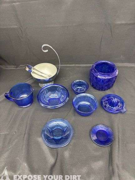1- 4.5" measuring cup and lid, 1- 3" measuring cup, 1- 5" flour pot, 1- 2.5" tall tiny bottle, 3- 6" plates, 1- 6.5" bowl, 2- 4" plates, 4- 4.5" plates, 1- 5" bowl, 1- 4" bowl, 1 bowl with metal and metal tongs