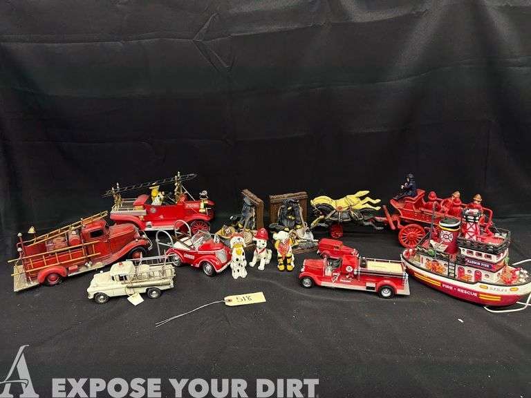 LOT 518 - Misc. Fire Dept. Vehicles/Trucks, Ship, Dogs, Book Ends