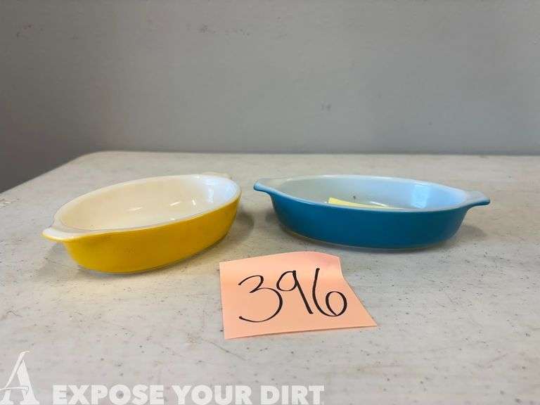 LOT 396 - Pyrex Let's Go Jacks - Horizon Blue and Yellow Casserole Dishes