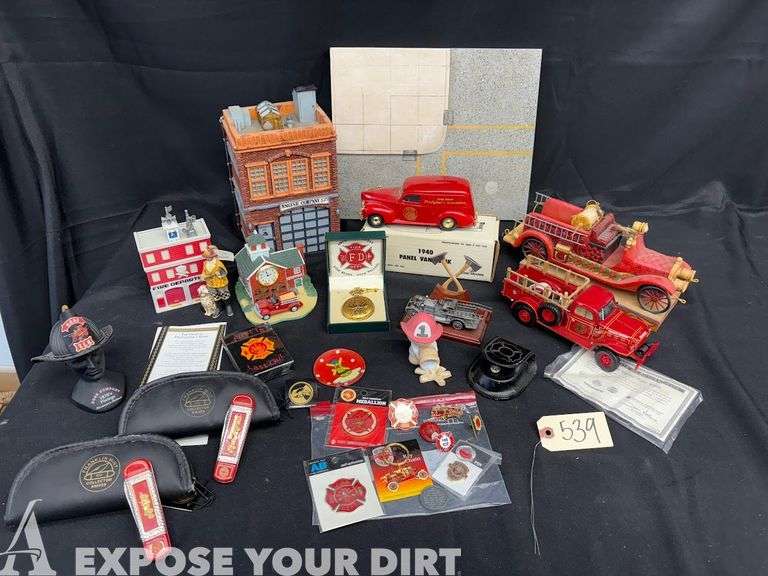 LOT 539 - Misc. Firefighter Pins, Knives, Cards, and Other Decor