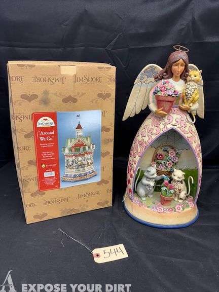 LOT 544 - Jim Shore "Around We Go" Carousel, Jim Shore Angel Cat and Floral Lady