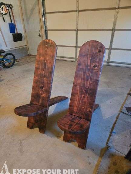 Gaze up at the stars, sit around a campfire, or take these chairs along for an easy fishing or camping trip. The common design is two boards joined by slotting a long tenon through a simple mortise. A great beginning woodworking project for 4-H Members. This set made by Hanson County 4-H Member Nora B. and her dad.