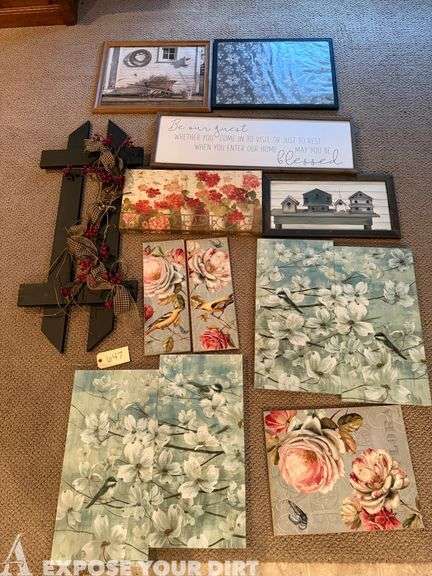 LOT 647 - Household Decor: Sets of Mounted Prints, Be Our Guest Sign, Pictures and Wall Decorations